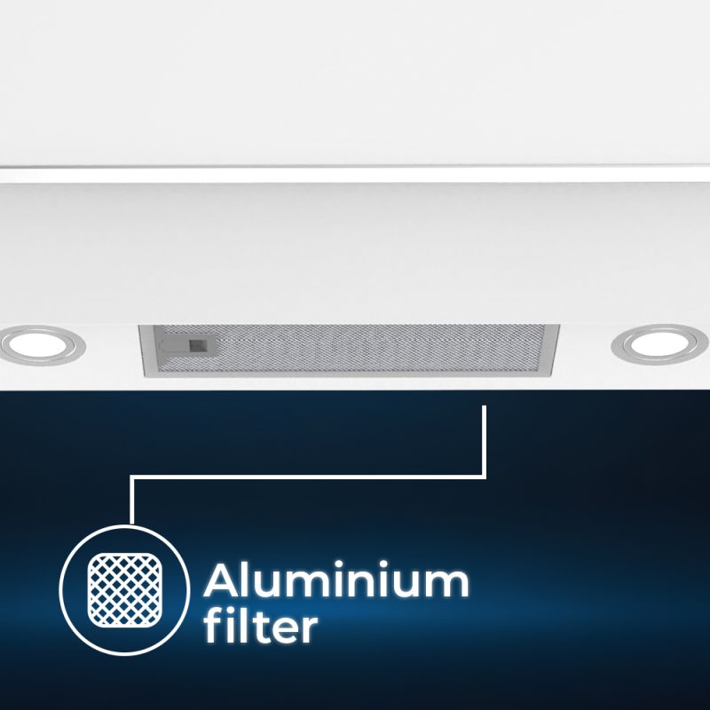 Incluye filtros de aluminio lavables incluso en el lavavajillas. Modelo compatible con filtros de carbón, no incluídos.