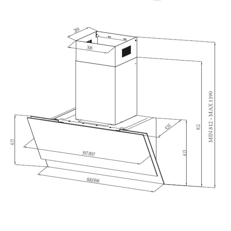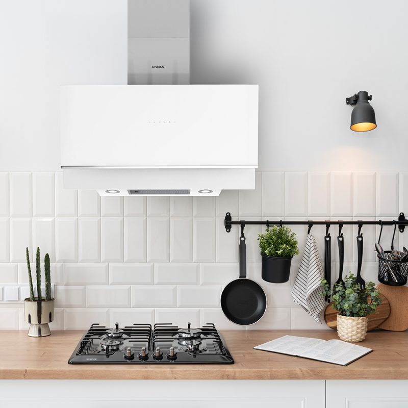 Campana Inclinada Hyundai A 119cm 90cm 43cm Cristal blanco Táctil LED 800m3/h 64dB Booster