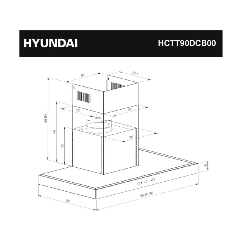 Campana Tipo T 90 cm de Hyundai, modelo HCTT90DCB00.