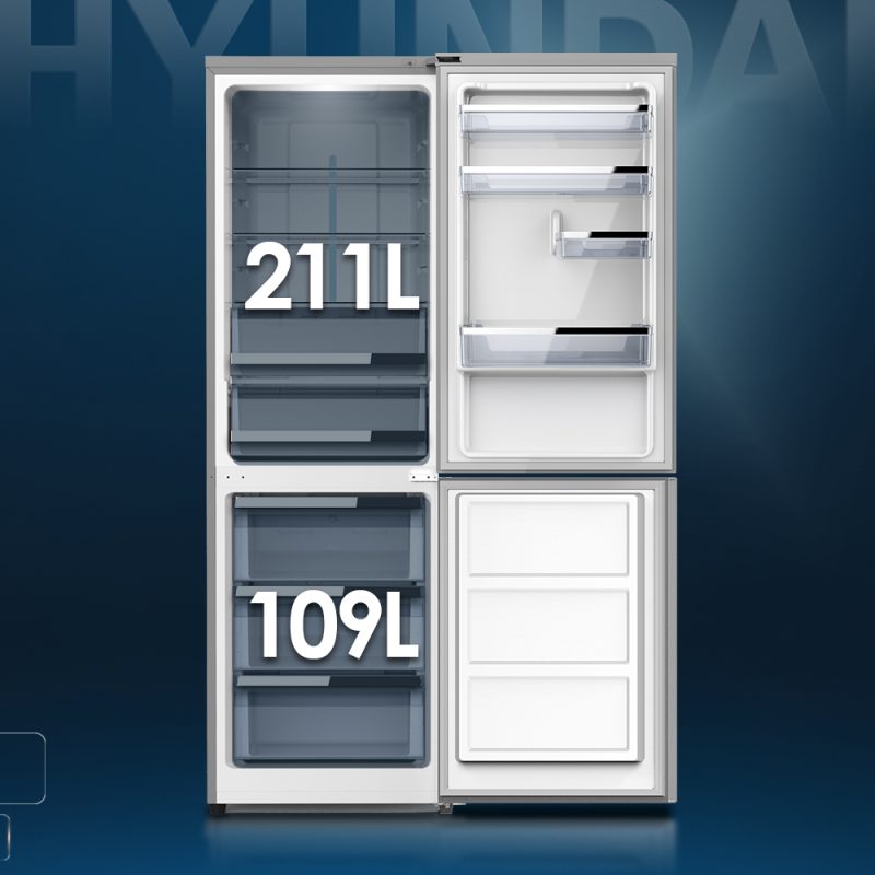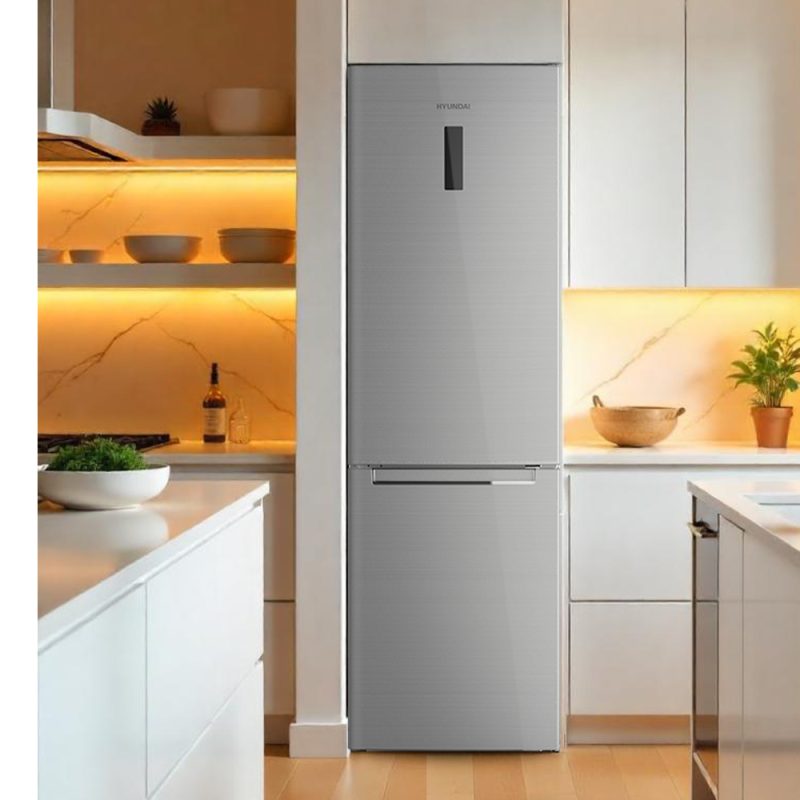 Combi Hyundai No Frost D 185cm 60cm 65,8cm Inox Display Inverter Modo Auto Modo Super Cajón Chiller Puerta 90º