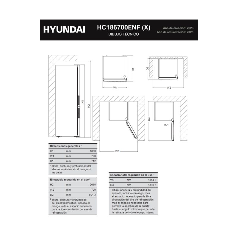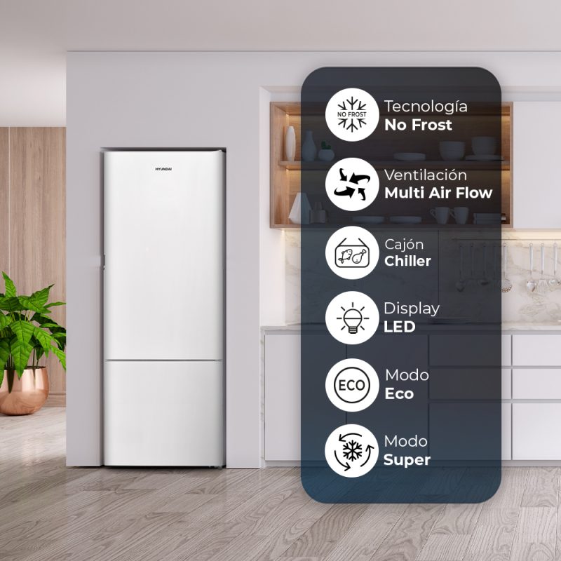 Combi Hyundai No Frost E 186cm 70cm 71,2cm Blanco Display Modo Eco Modo Super Cajón Chiller