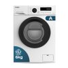 Lavadora con capacidad de carga 6 kg y una velocidad máxima de centrifugado de 1000 rpm. Motor Inverter con eficiencia energética A y nivel sonoro máximo de 76 dB.