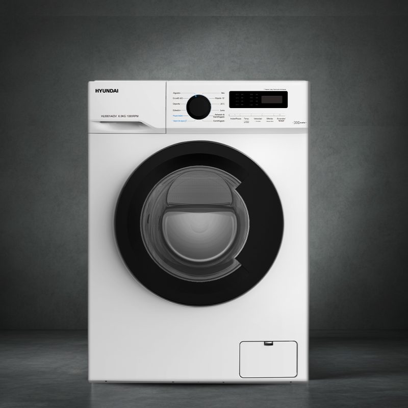 Lavadora Hyundai 6kg 1000rpm A 85cm 60cm 44cm Blanco Display Inverter Vapor Mi Ciclo Puerta XXL