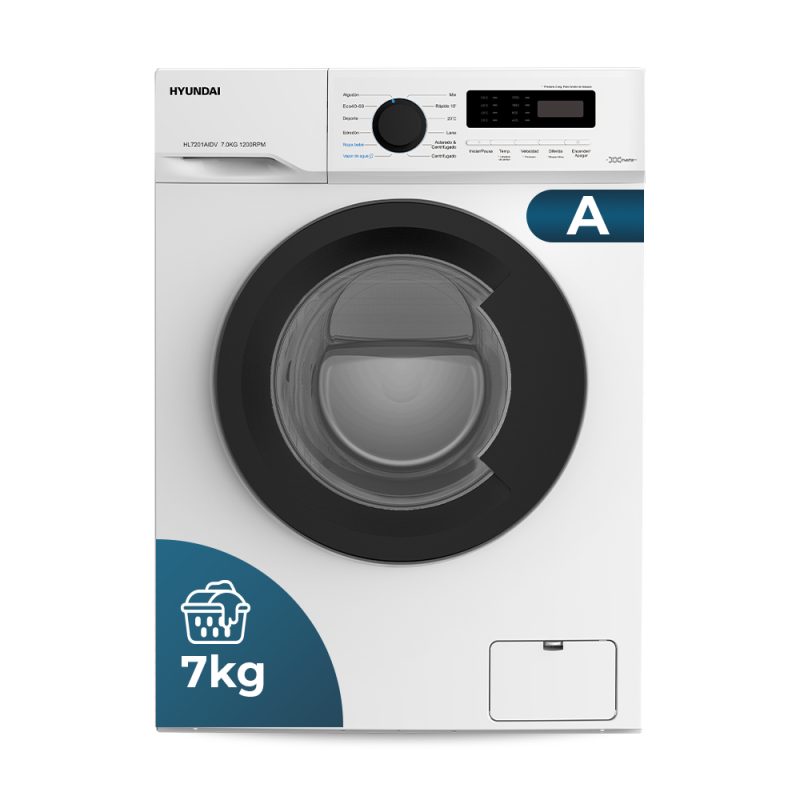 Lavadora Hyundai 7kg 1200rpm A 85cm 60cm 44cm Blanco Display Inverter Vapor Mi Ciclo