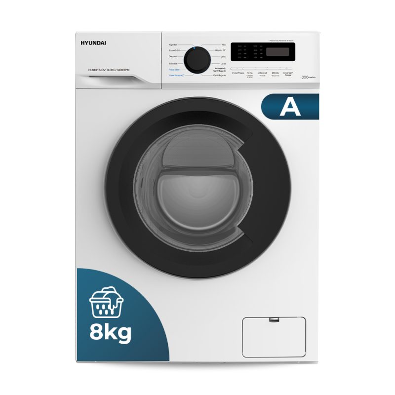 Lavadora Hyundai 8kg 1400rpm A 85cm 60cm 51cm Blanco Display Inverter Vapor