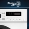 Estética blanca con puerta transparente, tambor de acero inoxidable. Sistema de control electrónico con Display LED con 12 programas de lavado y funciones para garantizar el mejor resultado y cuidado en tu colada.
