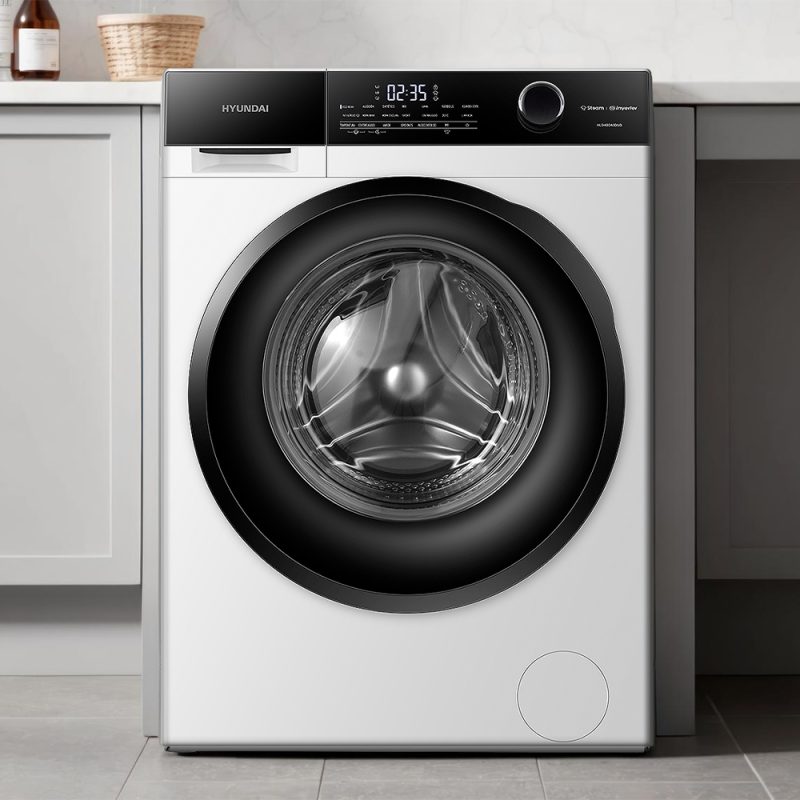 Lavadora Hyundai 9kg 1400rpm A 84,5cm 59,5cm 58cm Blanco Display táctil Inverter Vapor Antialérgico Mi Ciclo Puerta XXL T.Waterdrop C.Boomerang