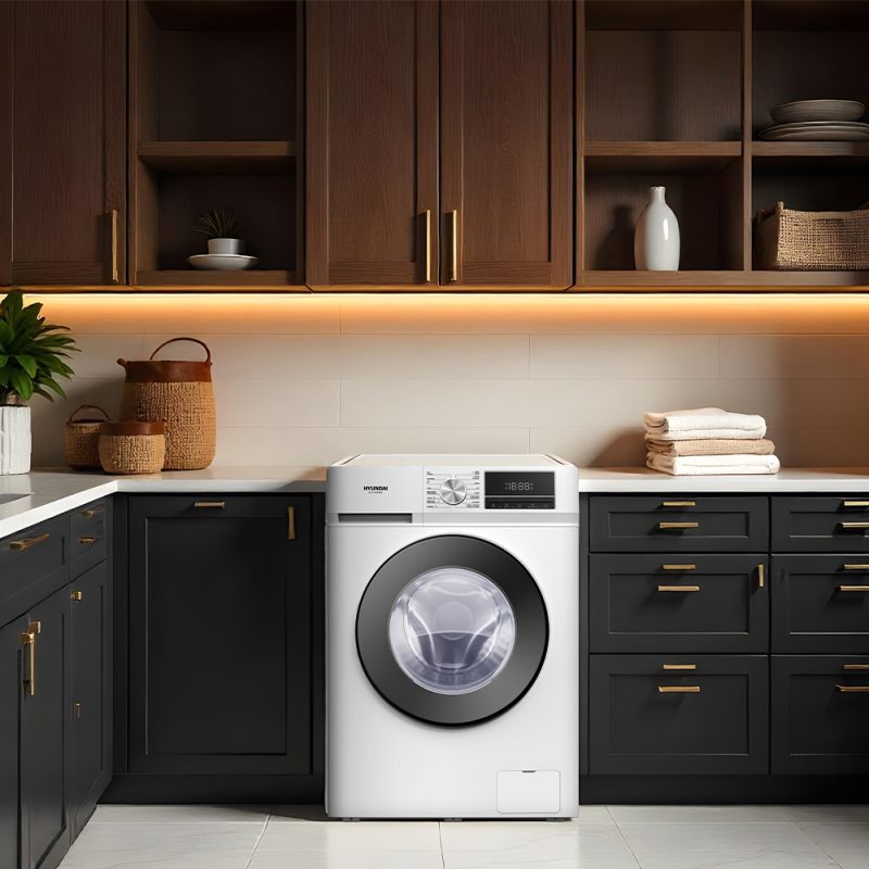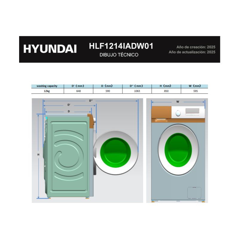 Lavadora carga frontal de Hyundai modelo HLF1214IADW01.