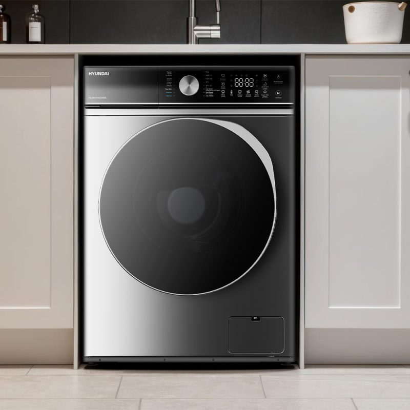 Lavadora Hyundai,Capacidad 9kg 1400rpm, Clase A. Dimensiones: 85cm 59,5cm 60cm. Color Inox, Control con Display táctil. Motor Inverter
