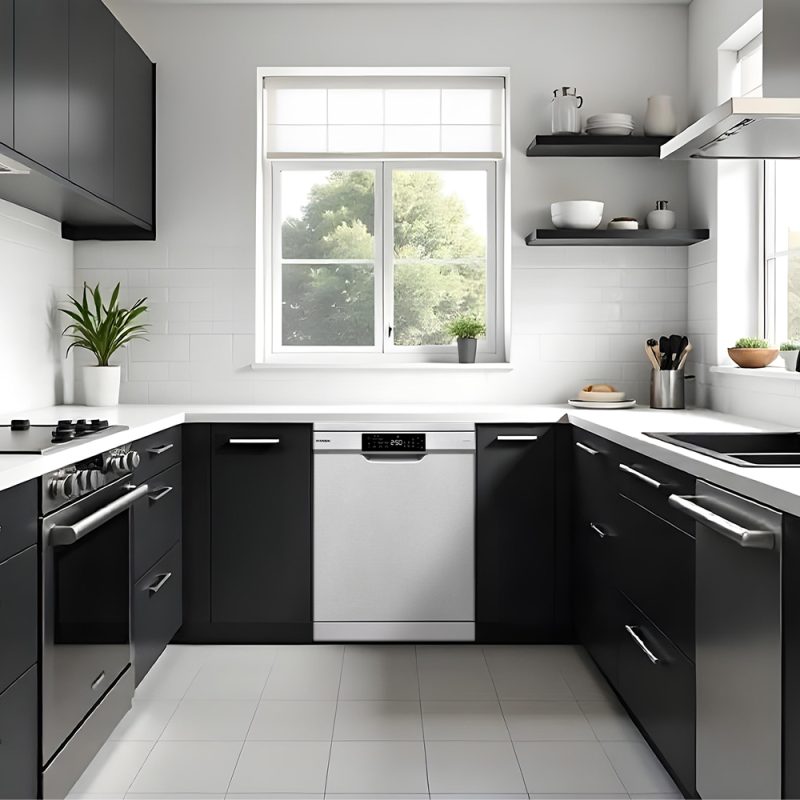 Lavavajillas con capacidad para 15 sets de cubiertos y sistema de secado turbo ventilado. Motor Inverter con eficiencia energética D y nivel sonoro máximo de 42 dB.