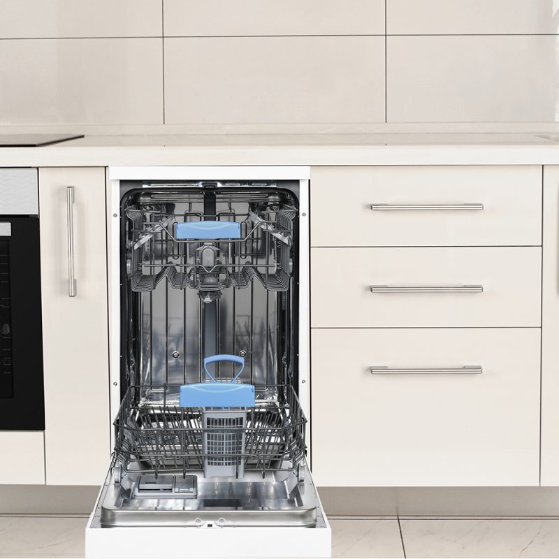 Lavavajillas Hyundai,Capacidad 10sets, Clase E. Dimensiones: 85cm 44,8cm 59,8cm. Color Blanco, Control con Display. 2 Bandejas y 6 Programas.