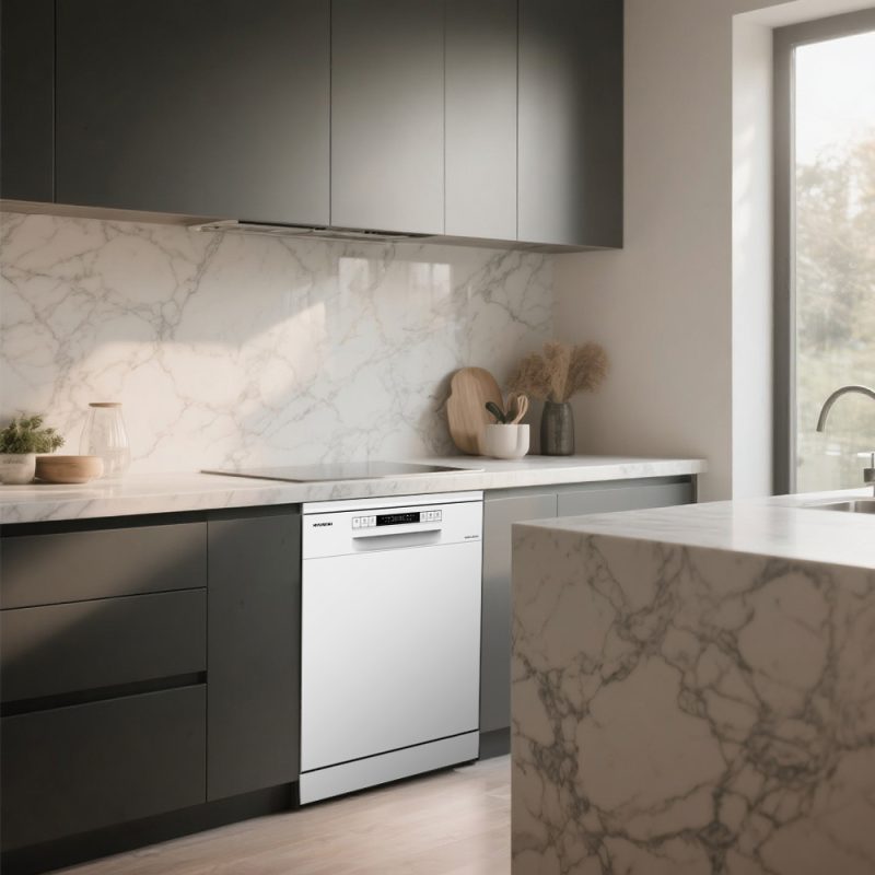 Lavavajillas Hyundai,Capacidad 14sets, Clase E. Dimensiones: 84,5cm 59,8cm 59cm. Color Blanco, Display. 2 Bandejas y 7 Programas.